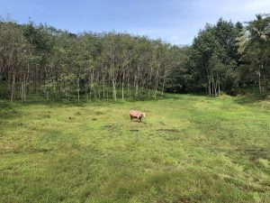 Lediglich Mrs. South Korea war immer am posen in die Kamera. Nach etwa 40 Minuten auf dem wilden Fluss erreichten wir das Ziel. Uns allen stand die Freude ins Gesicht geschrieben. Zurück im Camp zogen wir trockene Klamotten an und fuhren mit “Chai” und “Ja”, die in der Zwischenzeit ihren Sonntags-Spaziergang unternommen hatten, zurück zum Guesthouse. Auf meine Bitte hin hielt Chai im Kautschukwald an, damit ich diesen fotografieren konnte